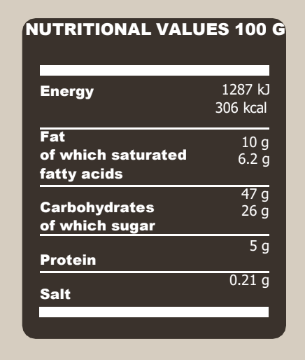 wheat flour 00, citrus pulp (orange peel, lemon peel, glucose syrup, brown sugar), fresh sour dough (gluten) sugar, butter, eggs, honey, soaked in orange cream syrup, salt.